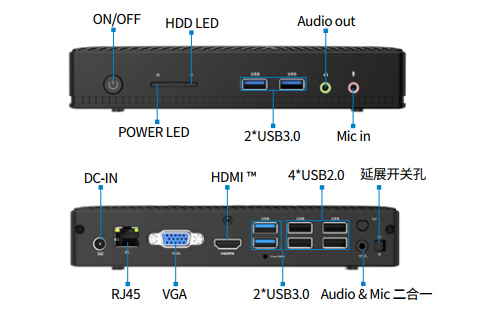 云终端Y-BOX P3主板上配备了 1个 M.2 插槽,支持两种尺寸(2242和2280)的NVMe协议PCIe固态硬盘,支持PCIE3.0、PCIE4.0。机身共配置了3个USB3.2 Gen2接口和3 个 USB2.0接口,以及1个 USB3.2 Gen1 Type-C,2个USB3.2 Gen1接口,满足用户更多应用拓展。