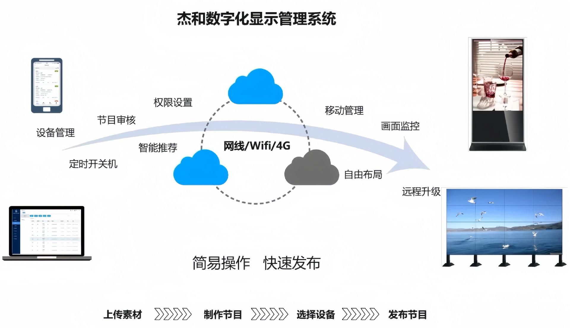 目前非凡游戏平台科技GDSM-ES系统覆盖市场上多形态网络智能显示终端,满足行业全产品业态需求,如广告机、LED显示屏、LCD拼接屏 、普通液晶电视等各种显示终端,广泛用于广告宣传、通知公告、指示引导。