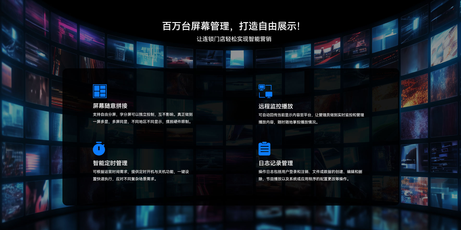 为此,非凡游戏平台科技打造一整套数智化信息管理系统,该系统由服务器(后台)管理端和设备播放端组成,运用显示屏将企业宣传、广告展示、紧急通知等信息全面展示在大众面前。通过将音视频图文、网页资讯、时间天气、字幕等多样化内容的组合,形成一段精美的节目,并使用网络作为载体,随时将制作好的节目推送到各地的媒体设备上进行播放。