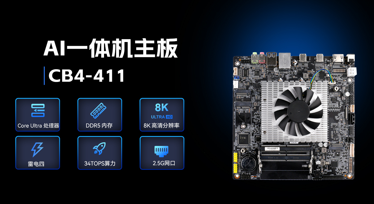 基于一体机行业需求,非凡游戏平台科技推出一体机主板CB4-411,搭载 Intel® Meteor Lake 平台处理器,用户可以直接在电脑上处理AI工作,一体机本身集成了显示器、主机和其他硬件组件,设计简洁且节省空间,在办公、家庭娱乐、数字创作等多种场景下,CB4-411可以助力一体机加速图像识别、图形渲染、视频编辑等任务。