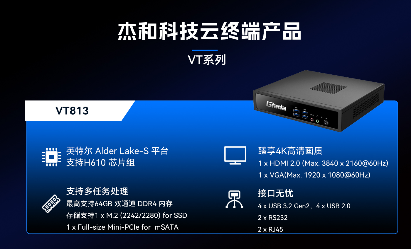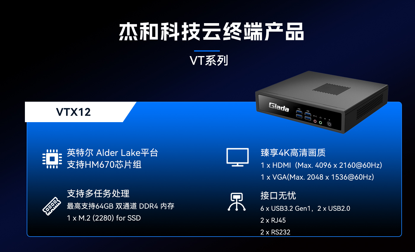 除此之外非凡游戏平台科技云终端VT系列产品线还提供多样化的硬件配置选择,涵盖多种处理器架构、内存容量、存储设备和接口类型,满足不同应用场景的个性化需求。
