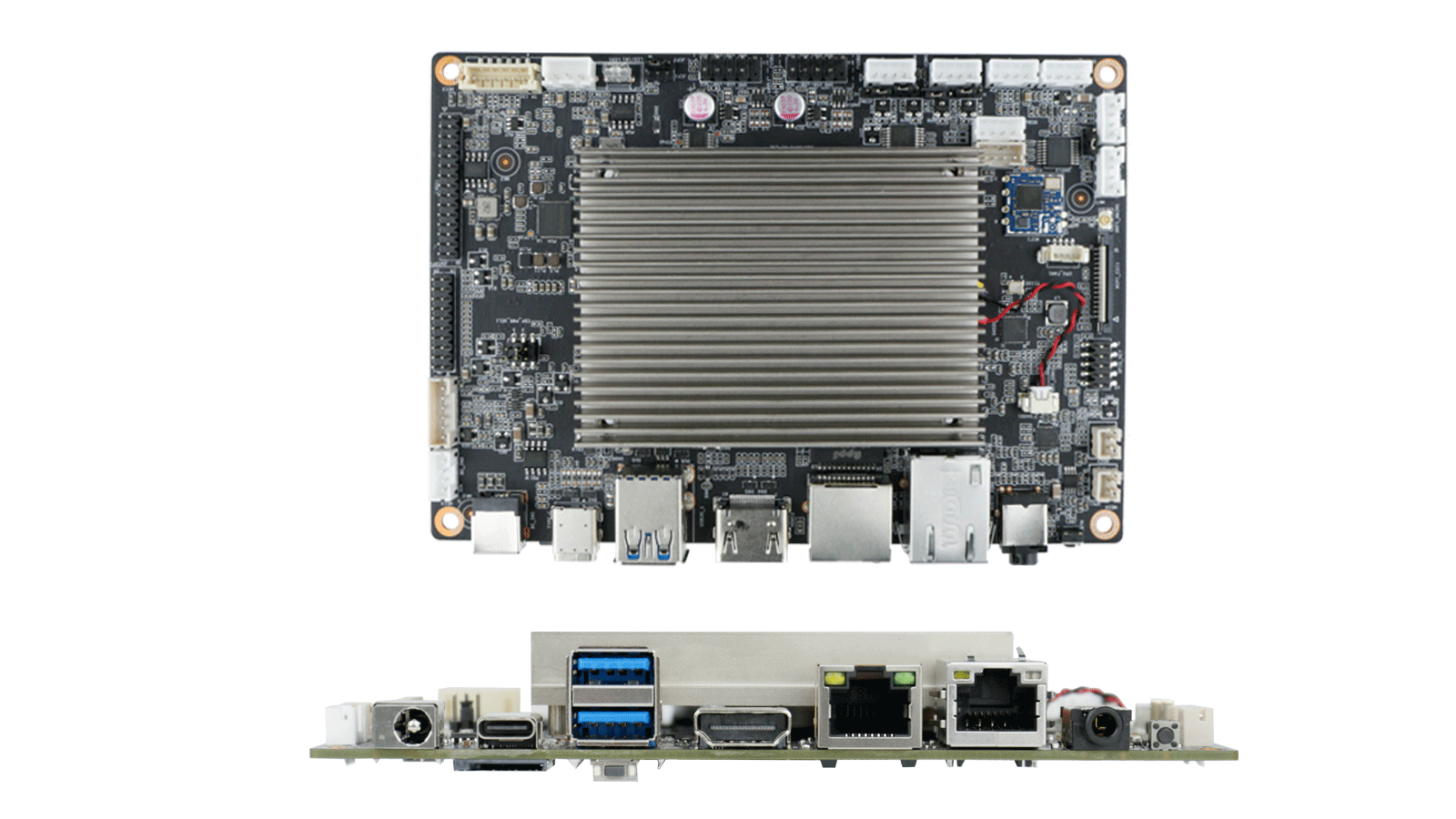 在内存与存储方面,该主板板载LPDDR4X内存,最大支持16GB容量;支持1个eMMC(最大128GB)和1个Micro SD卡槽,满足用户多样化的存储扩展需求。