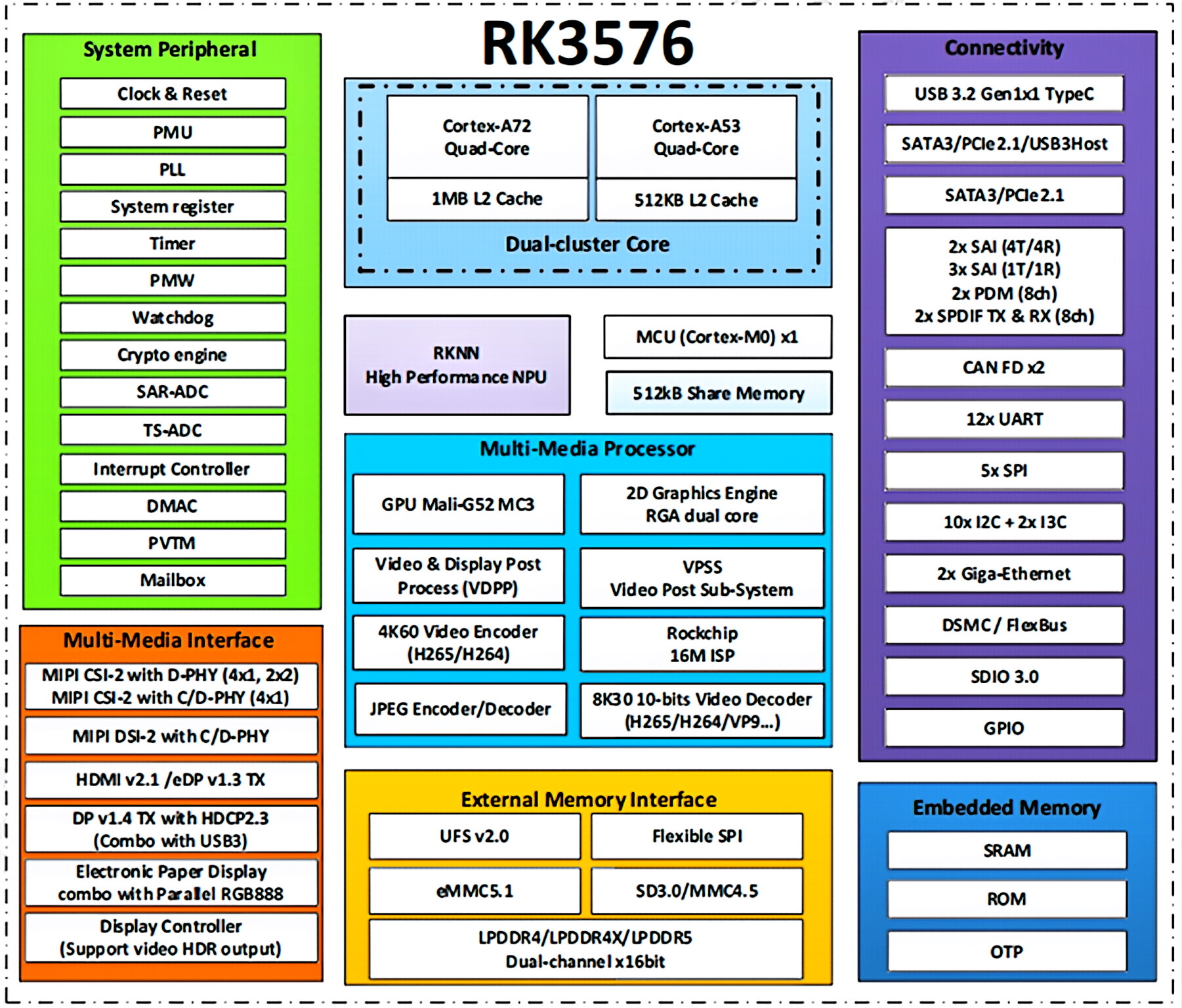 支持H.264、H.265、VP9、AV1和AVS2等高达8K@30fps或4K@120fps视频编码器;支持H.264和H.265高达4K@60fps,高质量JPEG编码器/解码器支持高达4K@60fps。充分满足多媒体显示、智能交互等应用需求。