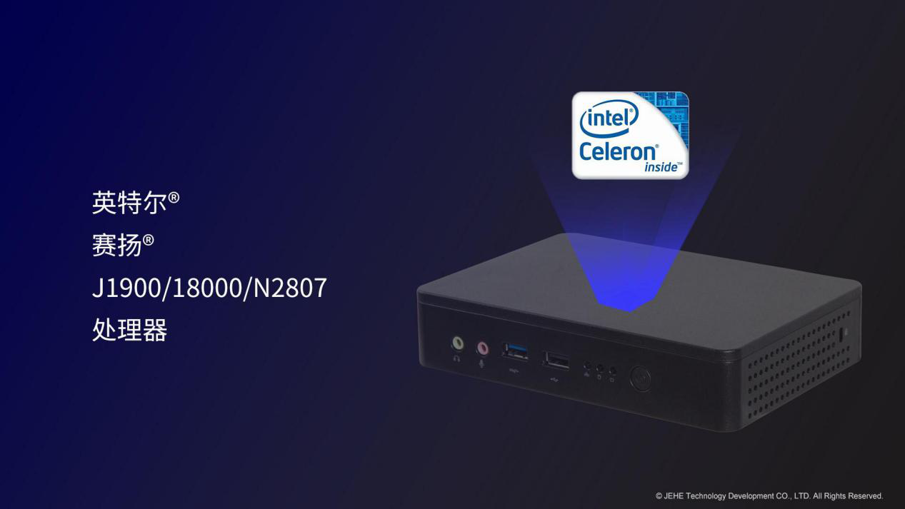 非凡游戏平台科技VT20桌面云终端搭载了知名度很高赛扬®J1900处理器。在嵌入式应用中,赛扬®J1900处理器主打的高单核运算频率(2.4GHz单核睿频)和低功耗(10W),非常适合面向复杂的嵌入式场景。此外,非凡游戏平台VT20适配了其他两款性能较低的BayTrail平台处理器,赛扬®N2807和赛扬®J1800,对于客户端性能要求相对较低的方案依然能够匹配需求。