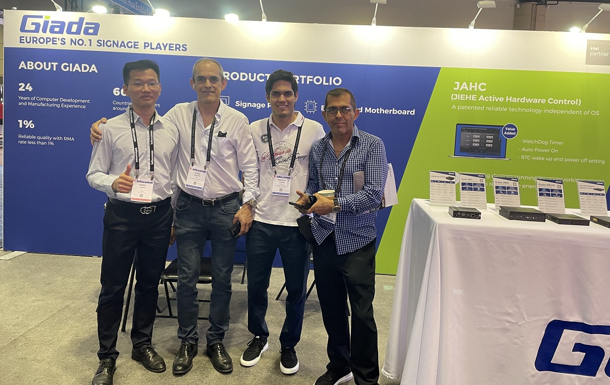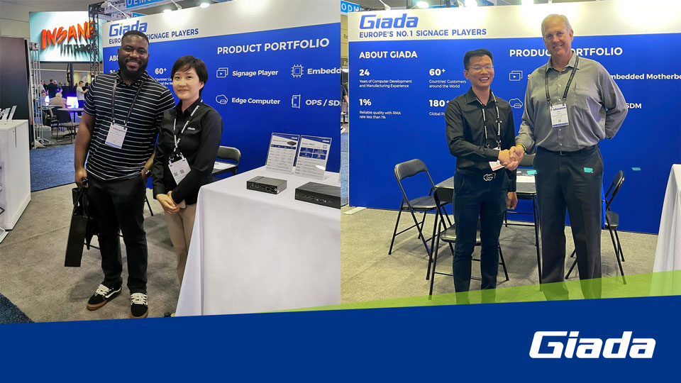 展会上Giada非凡游戏平台科技携最新的数字标牌和信息亭应用解决方案以及最新尖端产品惊艳亮相!其中最新的数字标牌播放器、边缘计算机和OPS(开放式可插拔规范)产品在现场备受关注,标志着Giada非凡游戏平台科技互动显示器和智能标牌解决方案领域的重大进步,也向全球参展观众集中展现了公司的非凡实力。