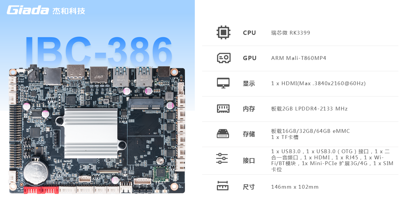 非凡游戏平台科技IBC-386是一款针对商显自助终端产品开发的3.5寸主板,具备高性能、低功耗、高扩展性、高可靠性、高安全性等特点,支持在宽温、复杂电磁等恶劣环境下稳定运行,可广泛应用于无人零售终端、智能自助终端、互动广告机、互动数字标牌、O2O智能设备、工控主机、机器人设备等应用场景等行业定制市场。