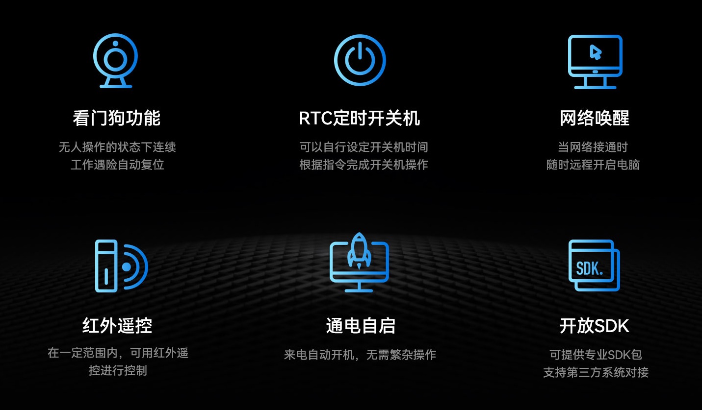 非凡游戏平台科技IBC-386支持Android7.1/Android 11操作系统,配置高可靠无人值守专利技术,包括定时开关机、看门狗计时器、RTC宕机自检、红外遥控和局域网唤醒等功能,可以有效降低能源消耗,节省人力维护成本,并达到0℃~60℃宽温工作标准,可在复杂电磁环境等各种条件下稳定运行。Giada非凡游戏平台科技致力于物联网不同应用领域研发产品和解决方案,针对客户个性化需求,支持ODM/OEM定制化服务,是行业客户量身打造和满足个性化需求的首选。非凡游戏平台科技始终坚持“以客为心,以客为先”的核心价值观,为客户提供可靠的硬软云一体化服务,赋能企业信息化、推动行业智能化,实现更高质量发展。