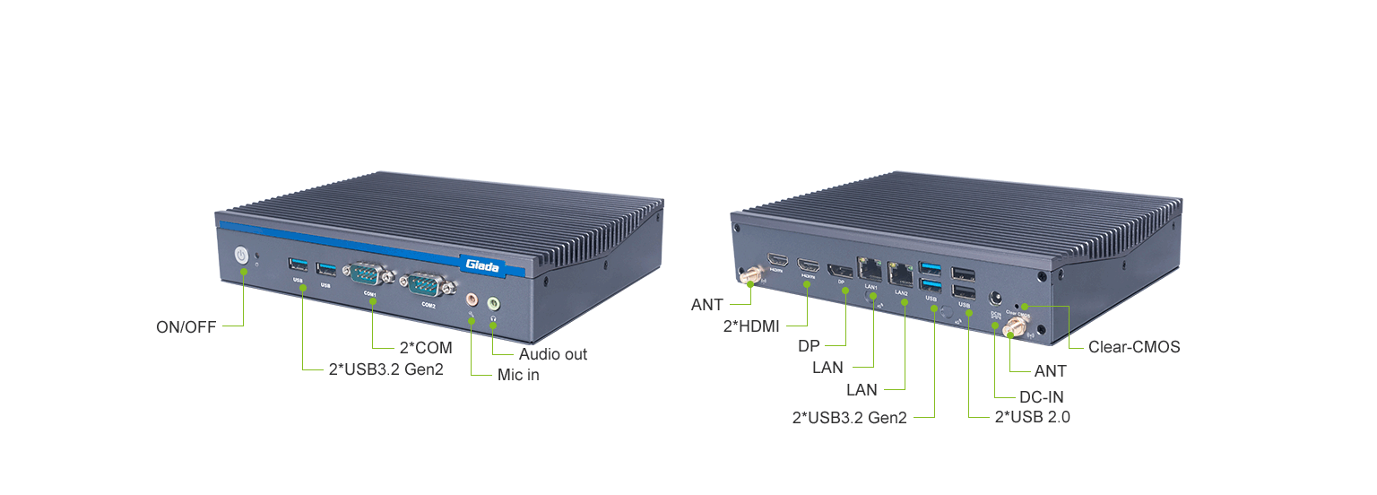 非凡游戏平台科技AE613支持Windows 11 (64bit) /Linux Ubuntu (64bit)系统,双千兆自适应RJ45网口,4 x USB3.1 (10 Gbps),2 x USB2.0,1 x RS232,,1 x RS232/422/485,1 x MIC-IN,1 x AUDIO-OUT,丰富的I/O功能接口,实现更多功能扩展。