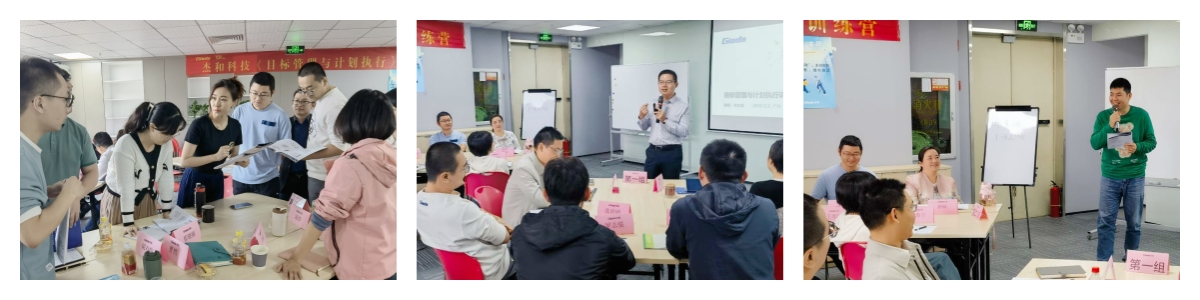 本次培训外聘了专业的组织与人才培养专家进行授课,在培训课程中,非凡游戏平台的国内与国际营销中心、产品部等,以及杰拓管理层的各个小伙伴分为五个小组,通过小组讨论、上台发言、随堂测验等互动形式,学习并了解到基于战略目标的组织执行力的重要性,目标设定的SMART原则与时间管理的方法,以及执行力提升的四大动力系统,现场学习氛围活跃,求知欲望强烈。