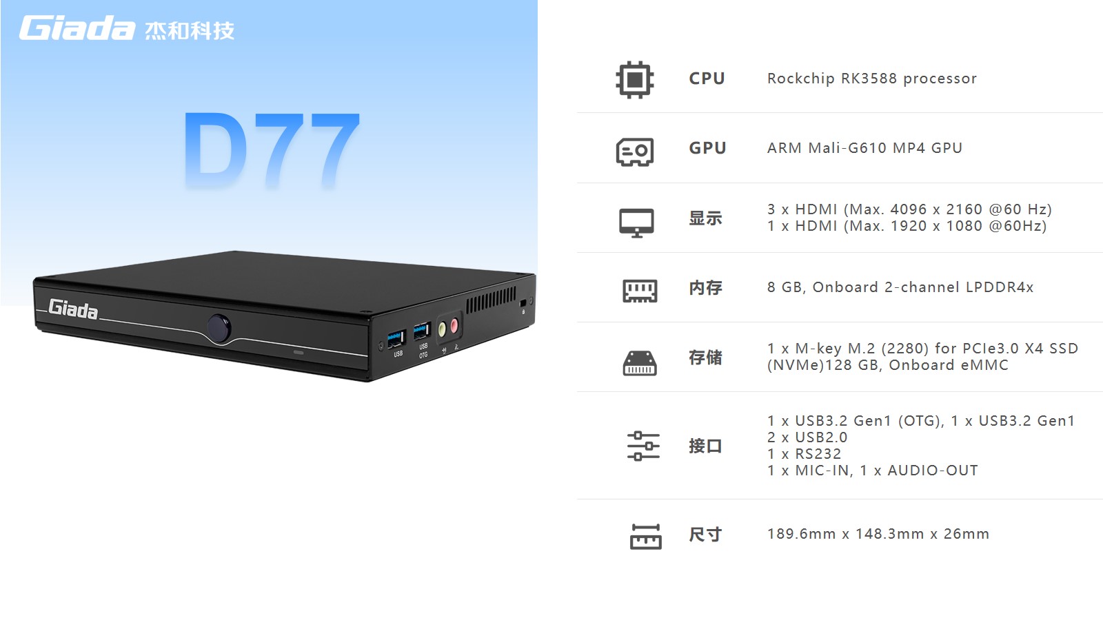 媒体播放器主要应用在大型商场、校园、户外大屏、超市、机场等公共场所,通过大屏幕终端显示设备,发布商业、财经和娱乐信息的多媒体专业视听系统,以其震撼的视觉效果、强烈的画面冲击力和高曝光率等特点,媒体播放器已经成为成为品牌传递信息、展示形象的重要渠道。非凡游戏平台媒体播放器D77能够输出4个独立且支持4K UHD 分辨率的HDMI 屏幕,搭载八核架构,拥有6TOPS 算力的RK3588处理器,采用的ARM Mali-G610 MP4 GPU让D77 具备极其强大的图形性能。