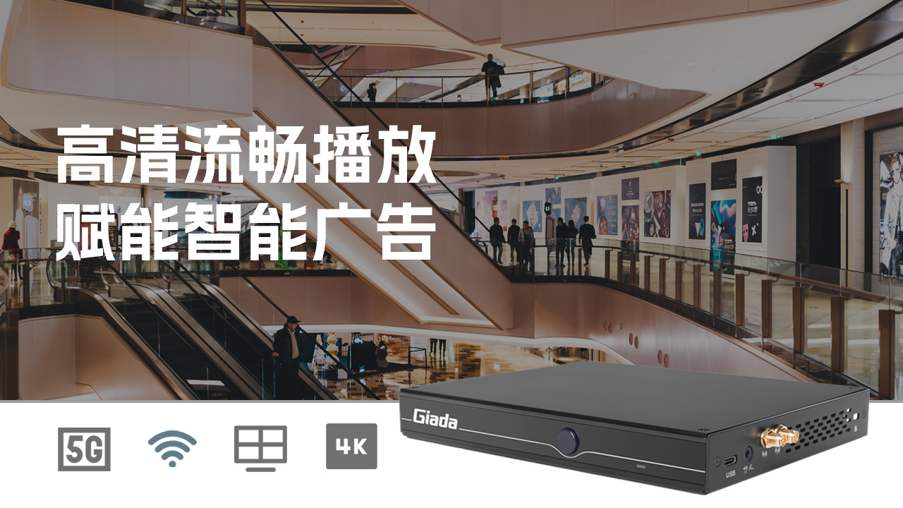 D613内含4个4k HDMI高清接口,能与大屏连接,发布多屏内容,商家只需要在购物中心显眼位置放置广告机,即可个性化演示服务类场景,吸引潜在消费人群。
