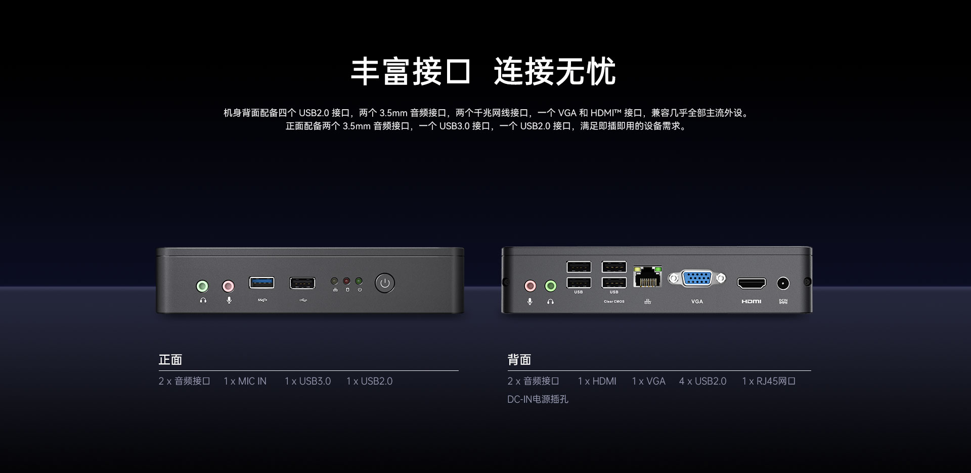 1 x HDMI,1xVGA双视频接口输出