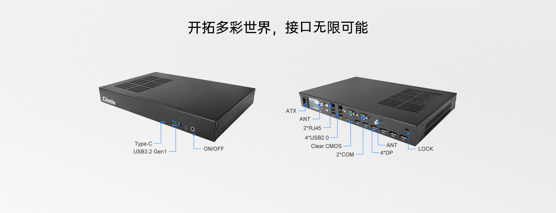 支持2x RJ45,1x 全高Mini-PCIe扩展WiFi/BT