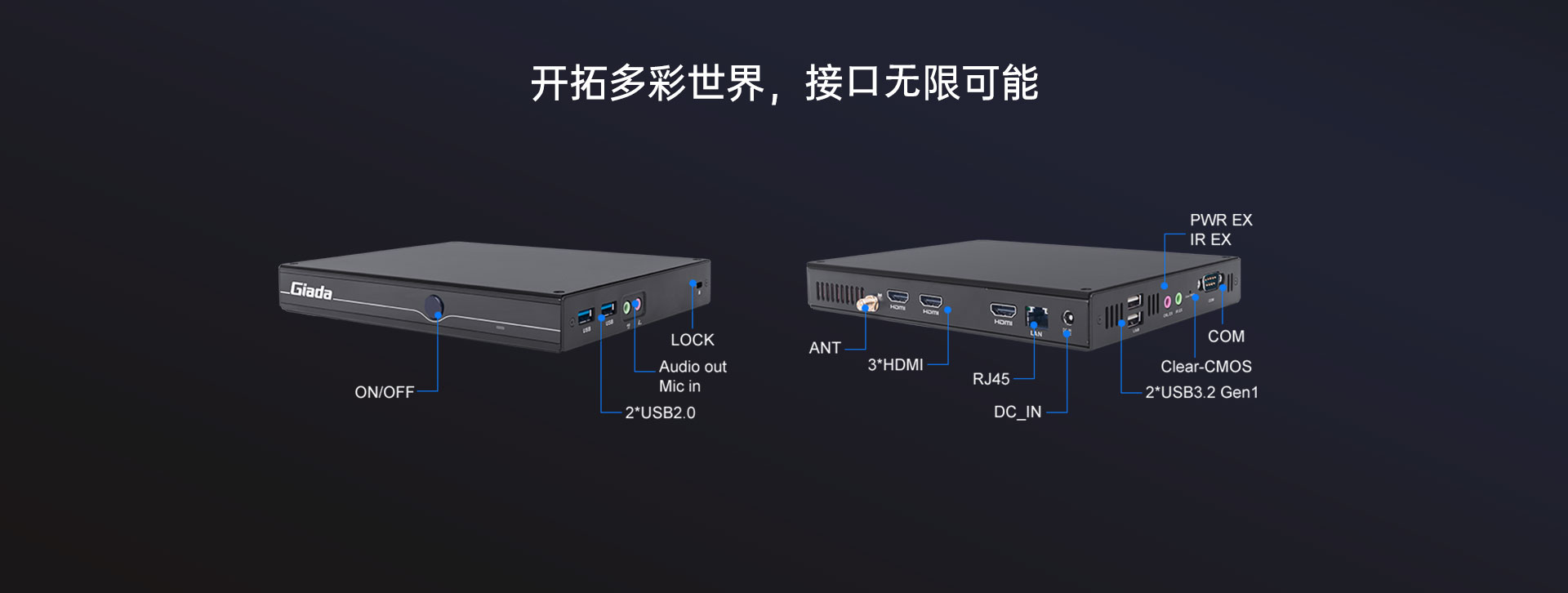 提供3个HDMI显示接口输出,支持4K显示