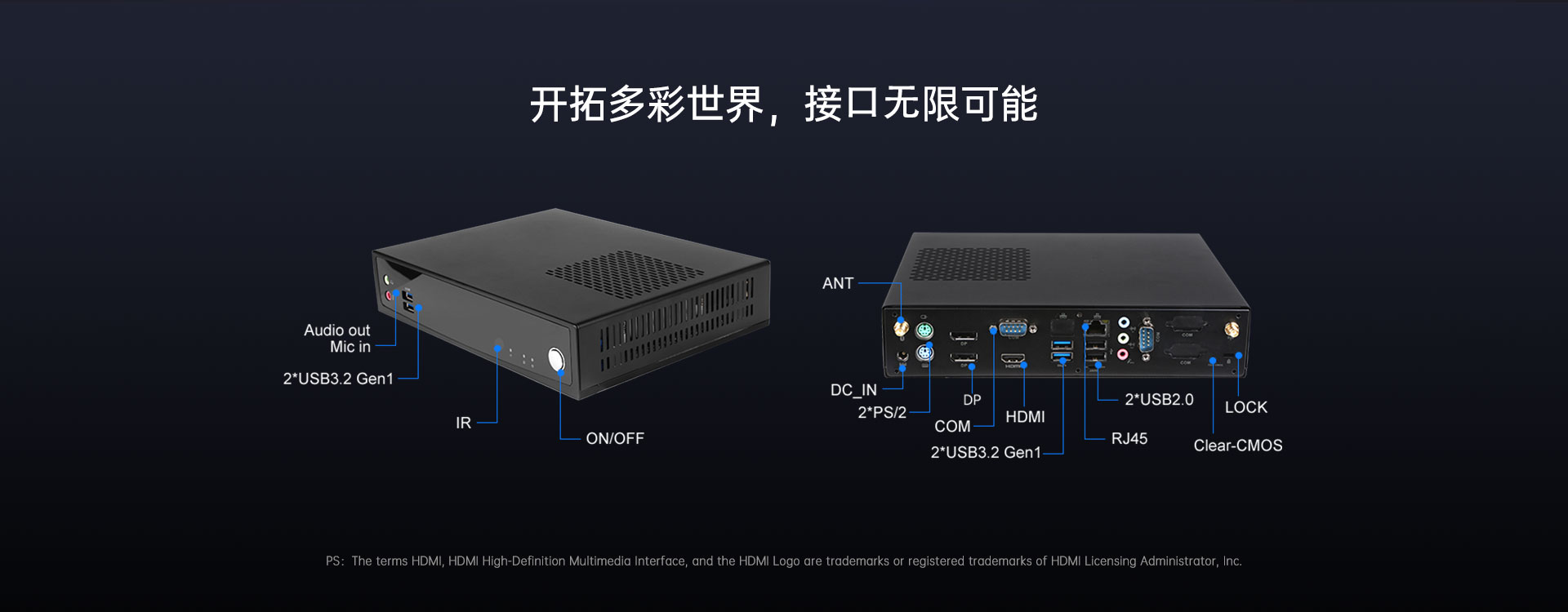 提供HDMI+VGA双显示接口输出